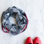 Originální nákrčník z dílny HAPPY HELEN – spojení prémiového bavlněného plátna / bavlněného úpletu a bavlněných špagátů. Než se jím ozdobíte, vrstvy látky prsty oddělte a načechrejte. Dejte kolem krku a ještě jednou omotejte. Špagátky si upravte tak, jak chcete. Je na vás, jak moc je ukážete.