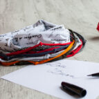 Než ho na krk dáte, vrstvy látky prsty oddělte a načechrejte. Dejte kolem krku a ještě jednou omotejte. Špagátky si upravte tak, jak chcete. Je na vás, jak moc je ukážete.