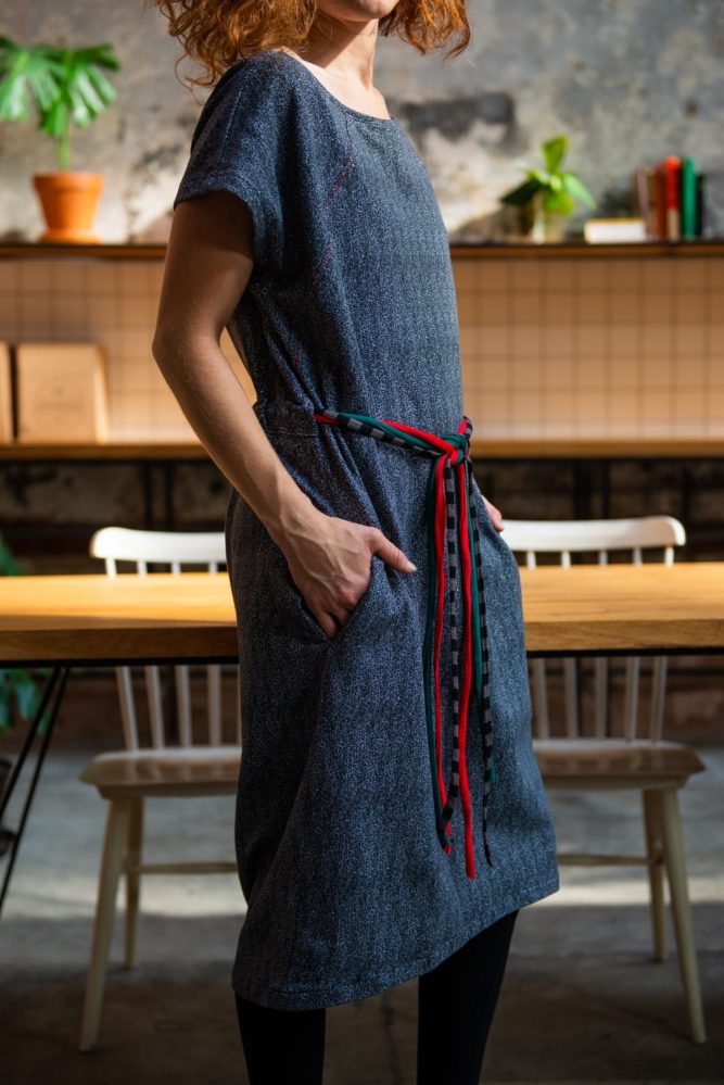 Střih je oversized, pro ležérní vzhled by šaty neměly být moc vyplněné.