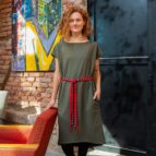 Střih je oversized, pro ležérní vzhled by šaty neměly být moc vyplněné.